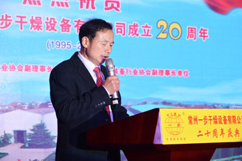 現場開始,首先由常州一步干燥設備有限公司董事長查國才致辭。二十年來,一步公司緊跟時代步伐,緊抓發展機遇,積極拓展業務,奮力做大做強,經營業績突飛猛進,管理水準顯著增強,品牌戰略屢創佳績,企業文化碩果累累。他代表一步公司向多年來關心、支持公司發展的各級領導、有關部門、兄弟單位以及社會各界表示誠摯的謝意,也向長期以來為公司兢兢業業、辛勤工作的全體員工表示衷心的感謝。同時他表示,將會以一步公司20年的發展為新起點,繼續發展壯大,為開創一步更加輝煌燦爛的發展局面而努力奮斗。