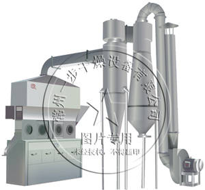 潔凈的熱風經閥板分配進入床體內,從加料器進入的濕物料被熱風形成沸騰狀態。由于熱風與物料廣泛接觸,增加了傳熱傳質的過程,因此在較短時間內就可干燥。如用連續型,物料從床體的一頭進入,經過幾十秒至幾分鐘沸騰干燥,自動從床體另一頭流出。本設備一般進行負壓操作。